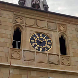 塔鐘機(jī)芯采用我公司自主研制開發(fā)的四連桿式機(jī)芯,即一臺主機(jī)帶動四臺分機(jī)運(yùn)機(jī)運(yùn)轉(zhuǎn),從而很好的保證了四面塔鐘計時的同步性。